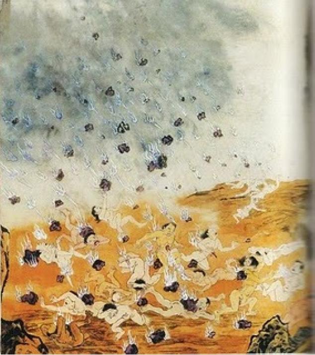 "මිනිසුන් තමන් ඉතා ඇලුමි කරන භාර්යාවන් සමග හොරින් කමිරතියේ යෙදුන පාපී පුරැෂයෝ මෙම නරකයේ පයින් අල්ලා හිස පහලට සිටින සේ ගිනි අගුරැ වලට හෙලනු ලබයි" යැයි ඔහු පිළිතුරැ දෙන ලදි.